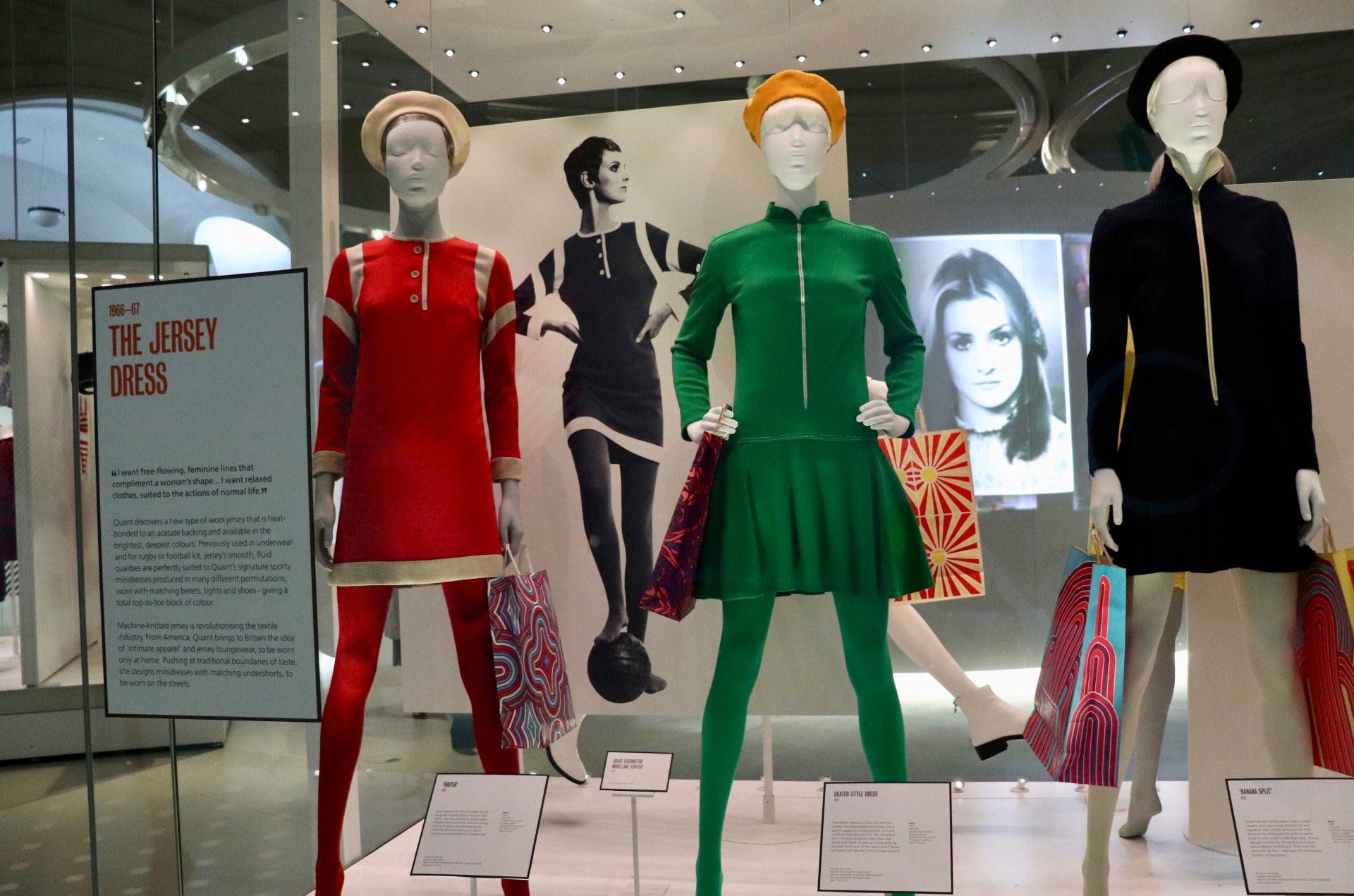 Usciamo dalla mostra un po’ sognanti e ci dirigiamo verso la nostra seconda tappa al V&A: la mostra dedicata a Mary Quant che fa l’ingresso nella moda negli anni 60.