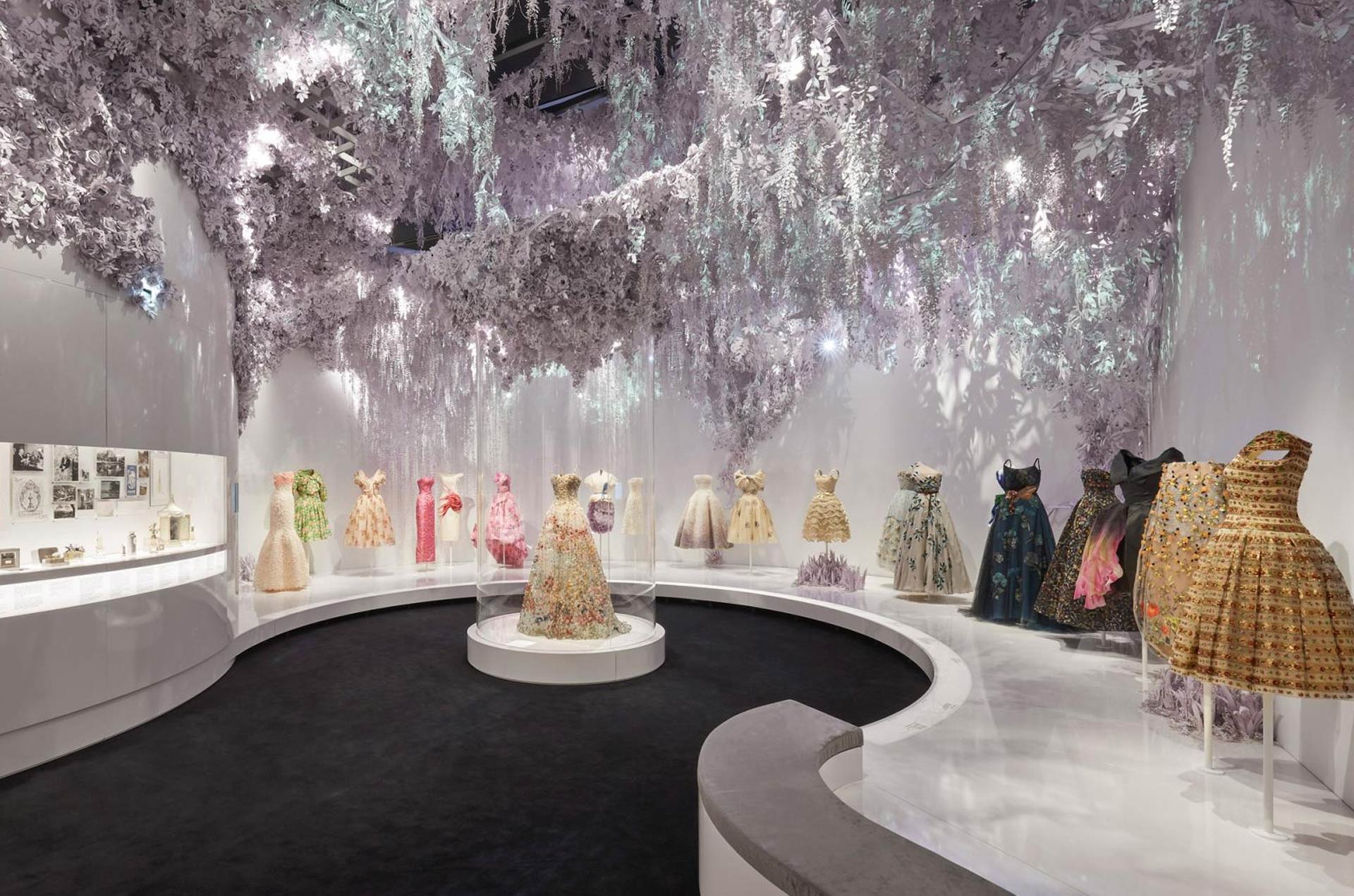 Ammirando i capi esposti si respira una donna raffinata, amante dei capi di alta moda che descrivevano bene il suo stato sociale, una donna che ritornava ai corpetti, allo stringi vita, una donna che doveva apparire perfetta. Non per nulla Dior ha ideato il total-look occupandosi di un intero guardaroba: dall’abito, agli accessori, alle scarpe, fino al profumo.